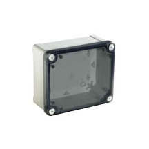 Thalassa TBP industrial PC box with transparent PC cover H20. Int is 175 x 150 x 80 mm. Ext is 193 x 164 x 87 mm. Wall mounted enclosure. Low transparent cover. Outside sealed is flat screwdriver captive screw lock. Certifications is DEMKO, SEMKO, TÜV, UL. UL 508 A Standard. Fire resistance 960°. Polycarbonate made. IP66 (NEMA 4.4X), IK08, Grey RAL 7035, Insulation Class II. Set of 5. Ambient temperature for storage/operation is (-15 to 60 °C)/(-25 to 80 °C).